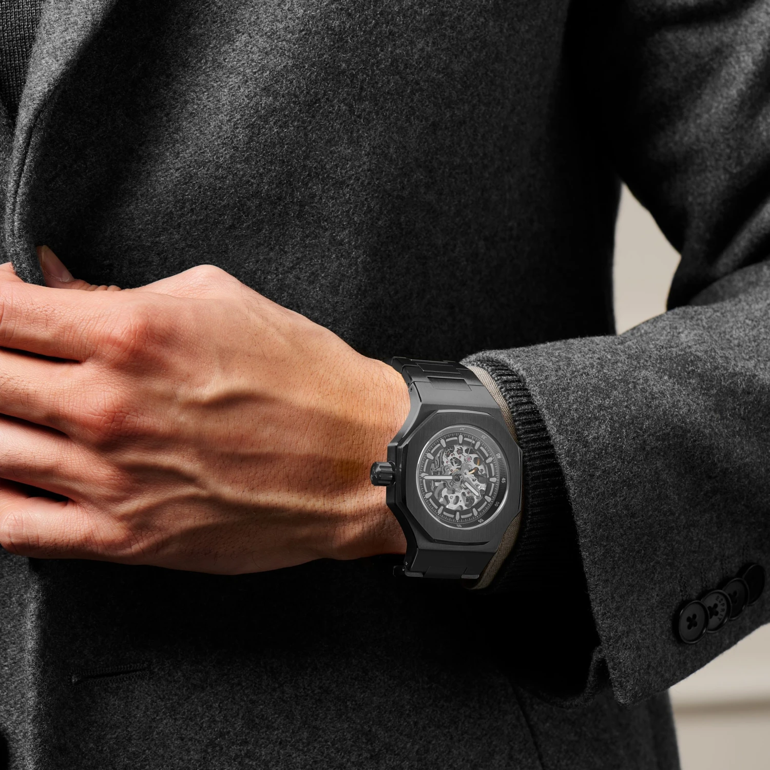 Le mouvement de précision Miyota 8N24 et le boîtier exposant le mécanisme vous permettront d’observer le temps qui s’écoule à chaque instant. Du verre saphir résistant aux rayures protégera son cadran.