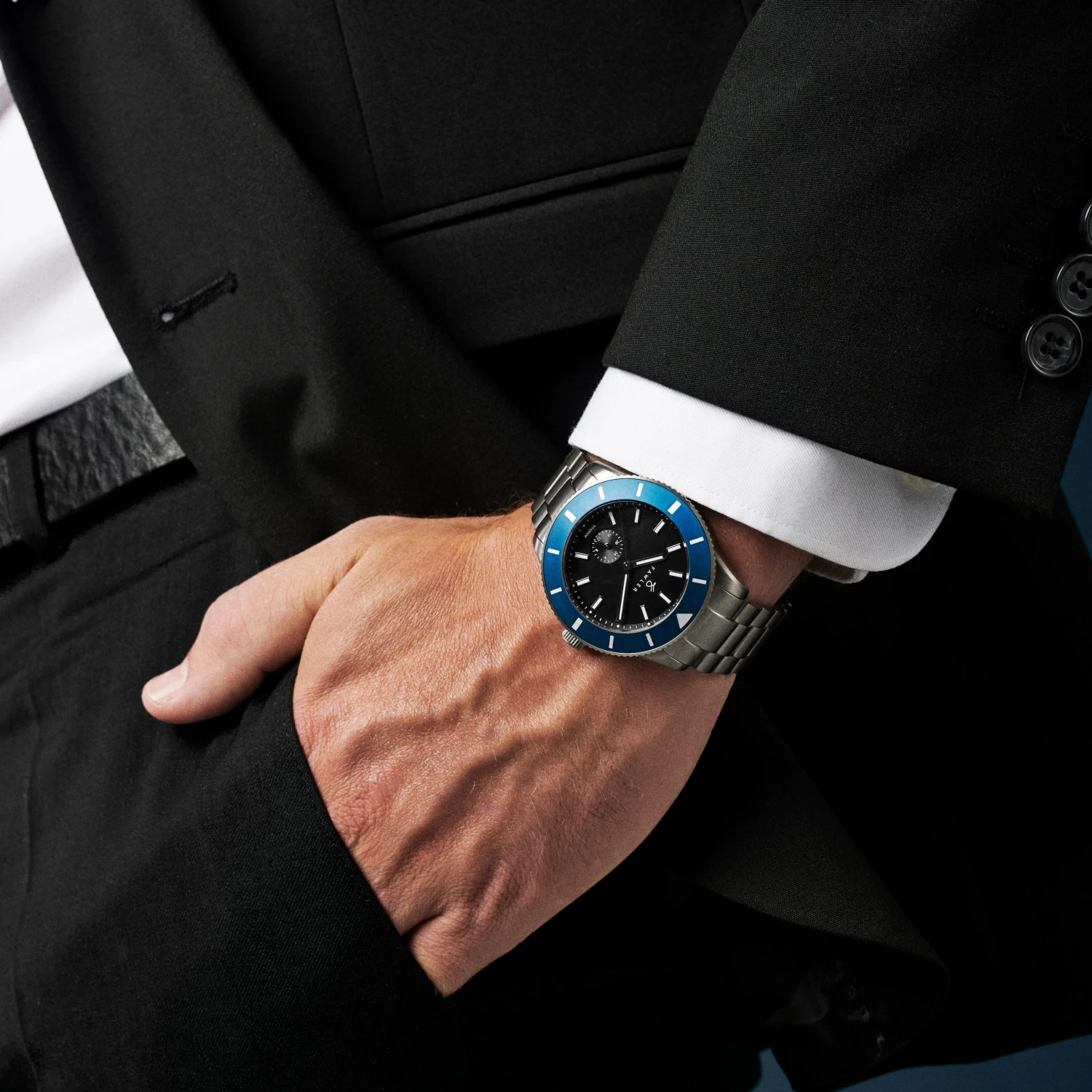 La collection Makalu est conçue pour le gentleman actif. Une montre hybride pour le sport et la plongée, légère et arborant un design aussi sobre qu’élégant.