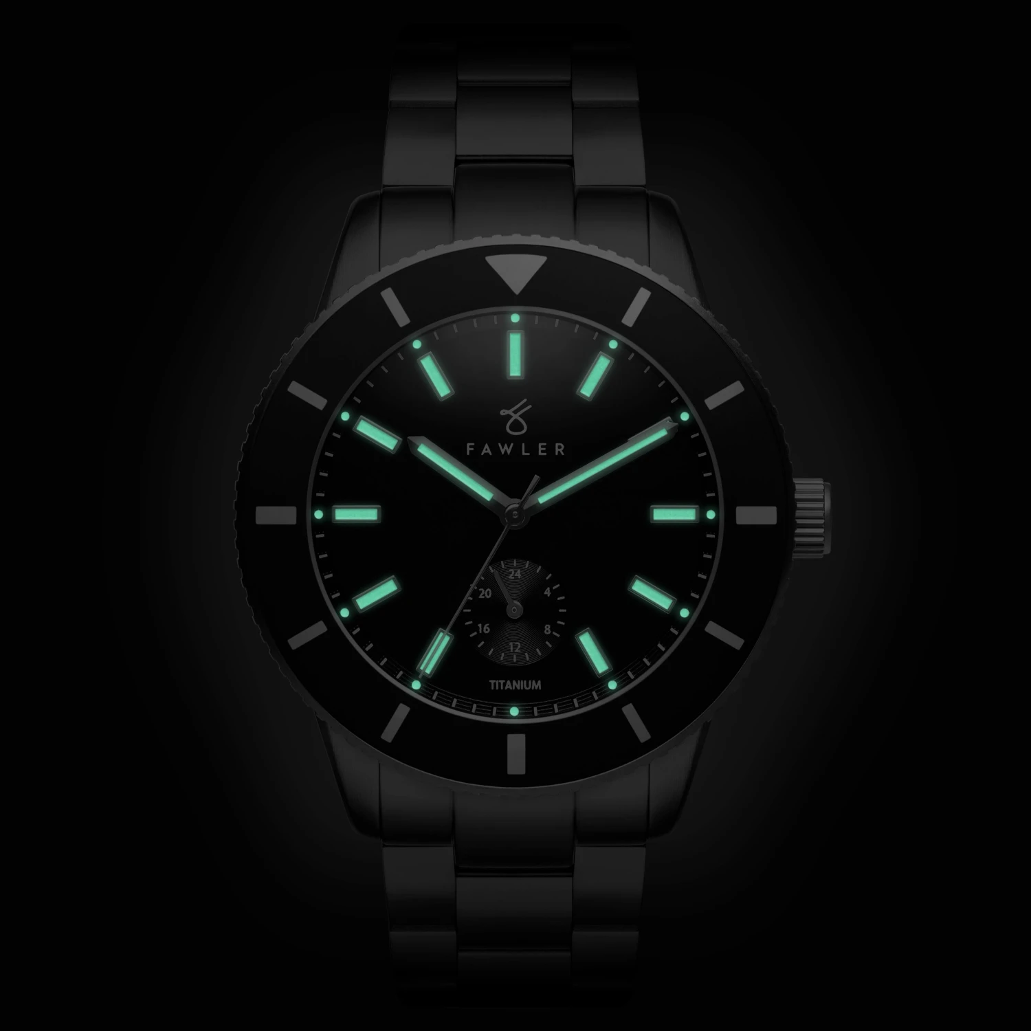 Fawler Makalu | Montre de plongée en titane brossé avec lunette noire