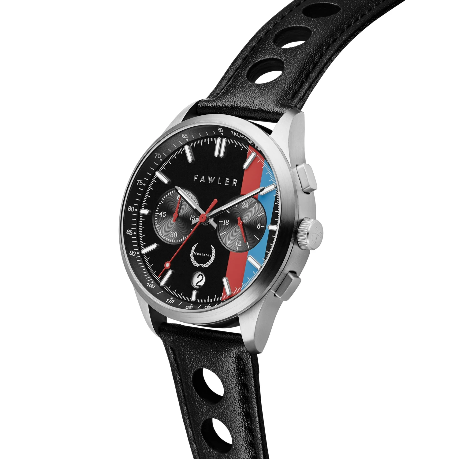 Glissez une montre de course classique à votre poignet. Mettez les gaz. La Monterey peut vous chronométrer, mesurer votre vitesse et a été conçue pour les professionnels de la conduite. Sa couronne et ses boutons tactiles sont même conçus pour être utilisés avec des gants.
