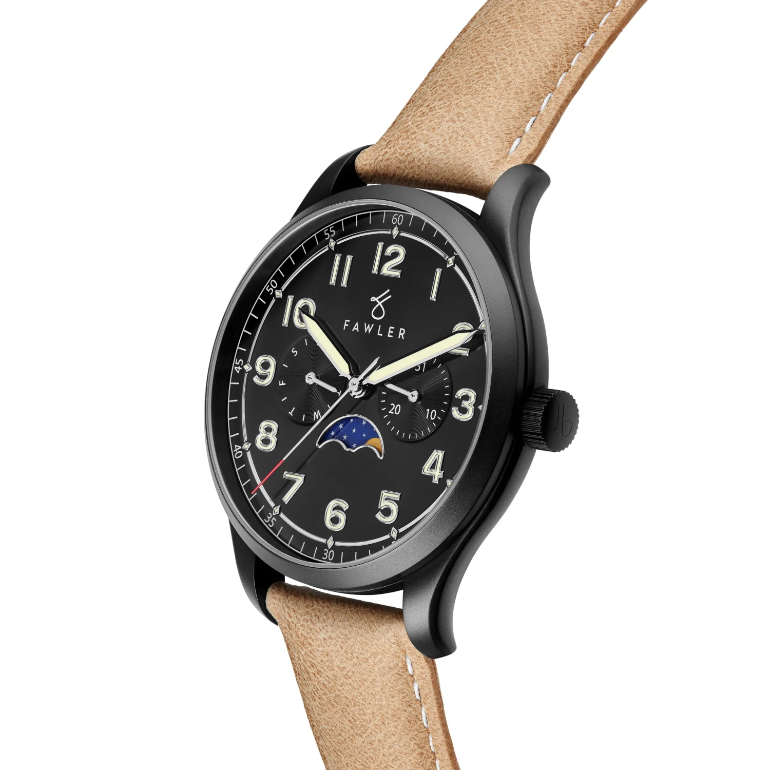 Aiguilles et chiffres qui brillent dans le noir vous permettant de lire l’heure même en pleine obscurité et sous-cadran à phases de lune pour un look intemporel.