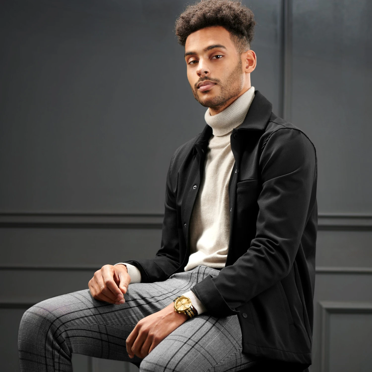 Deux sous-cadrans à chronomètre gardent une trace de chaque seconde, tandis que les aiguilles et les marqueurs dorés gardent votre style au point. Le bracelet en acier inoxydable est mis en valeur par des nuances noir et or qui s’harmonisent au boîtier robuste.