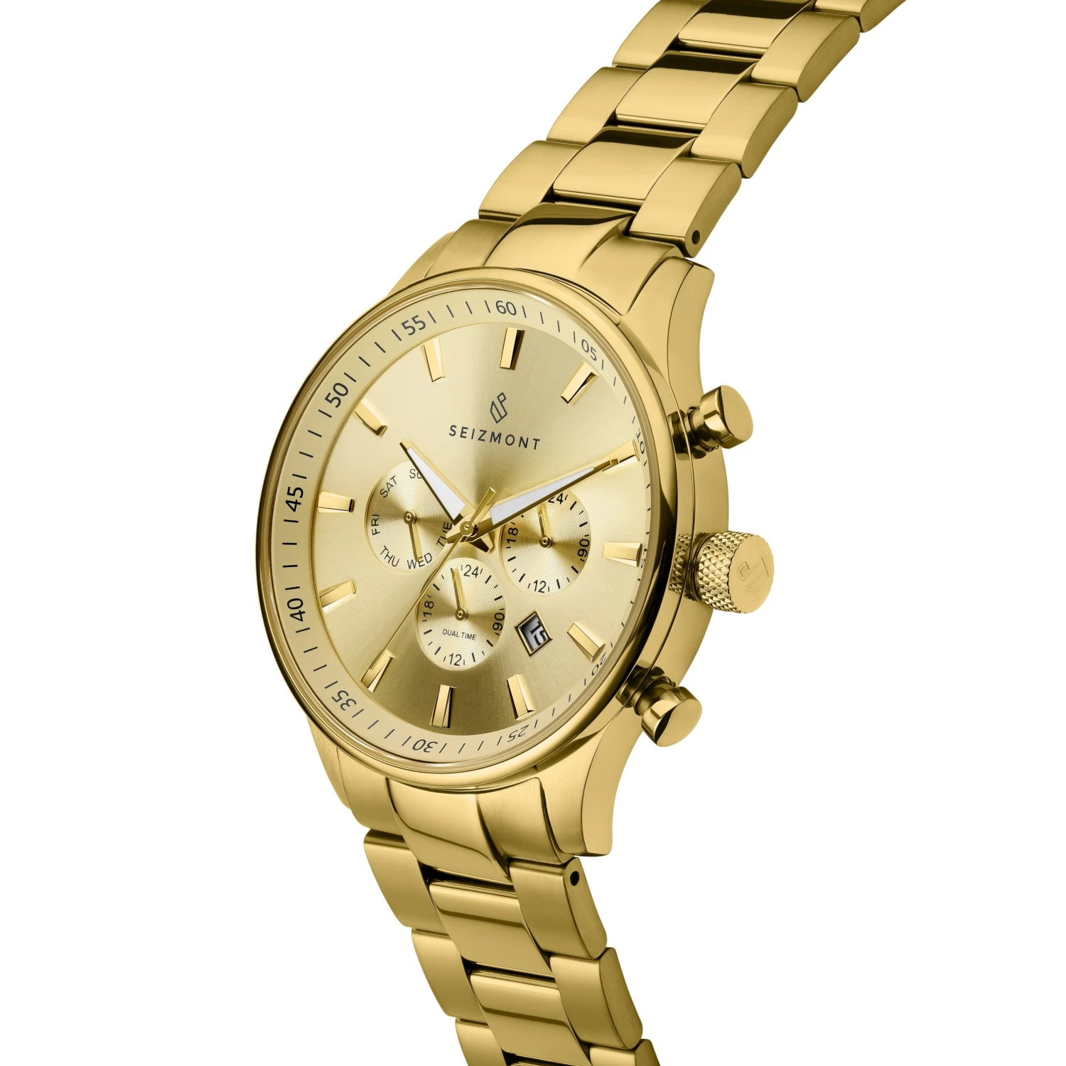 Dorée à point, cette élégante montre pour hommes conçue par Seizmont au Danemark est un véritable petit bijou empreint de classicisme.