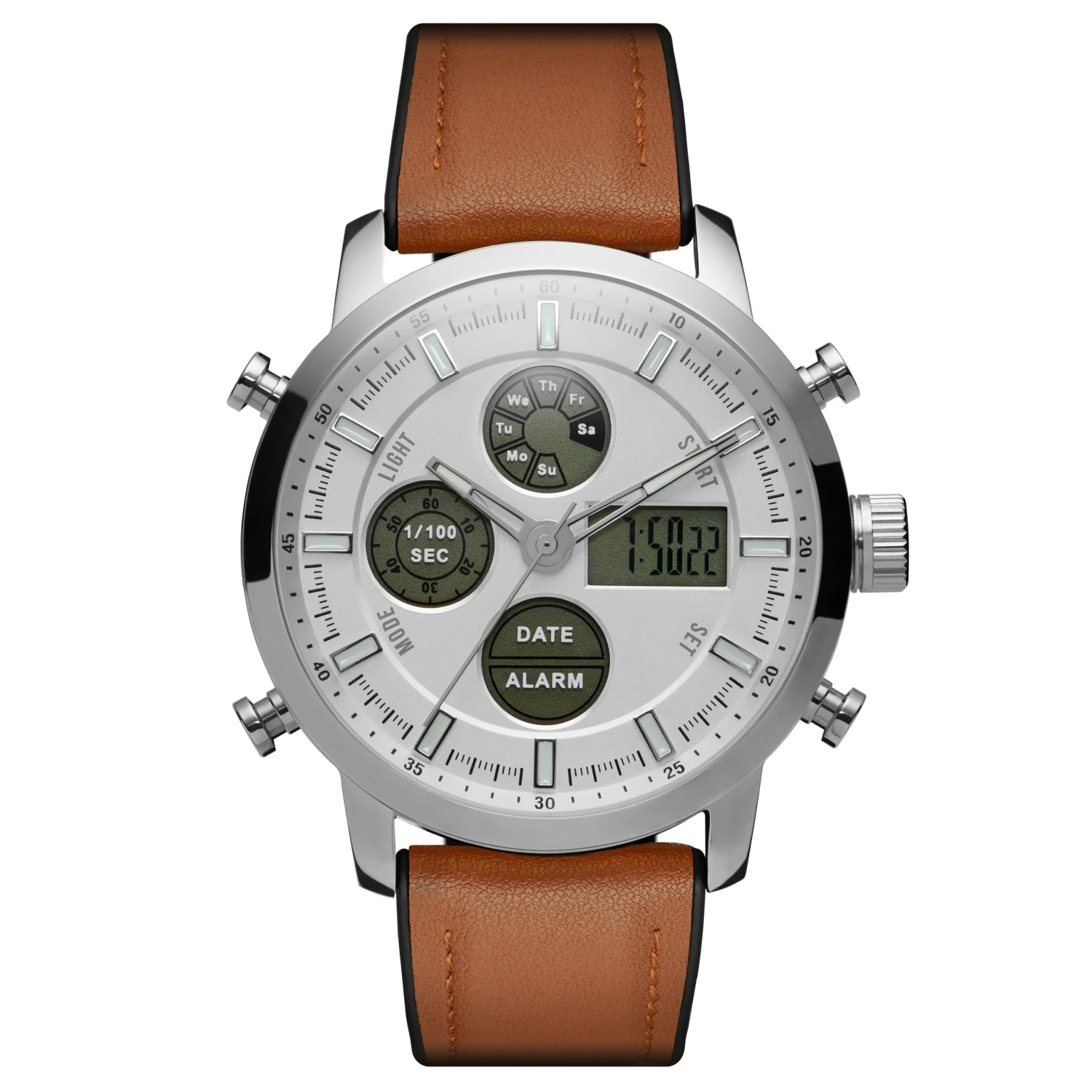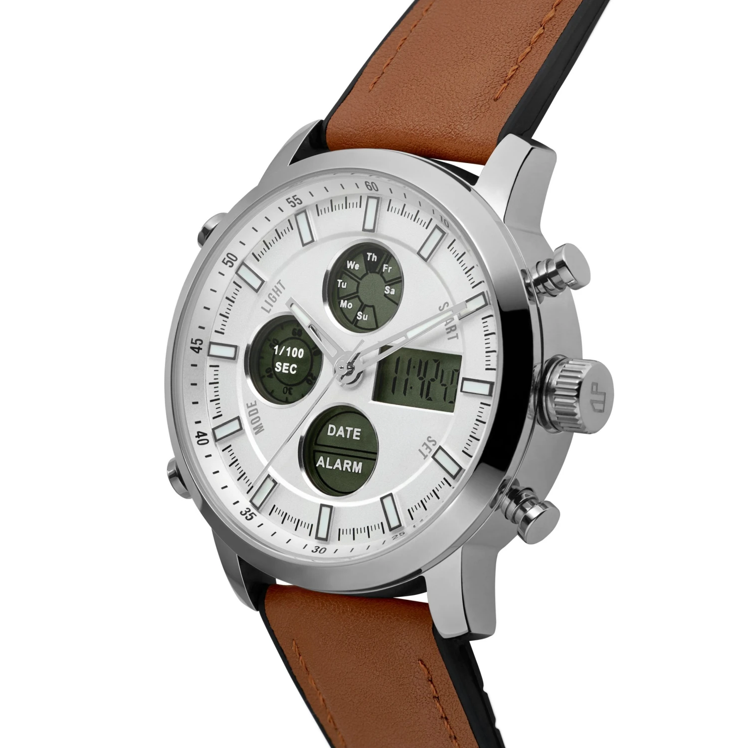 Cette montre pour homme est dotée d’un boîtier en acier inoxydable chirurgical de 43 mm avec un cadran blanc recouvert d’un verre de montre en cristal minéral trempé. La combinaison de cuir et de caoutchouc sur le bracelet de la montre offre durabilité, confort et flexibilité. Et grâce à ses broches à dégagement rapide, vous pourrez changer de bracelet en un clin d’œil.