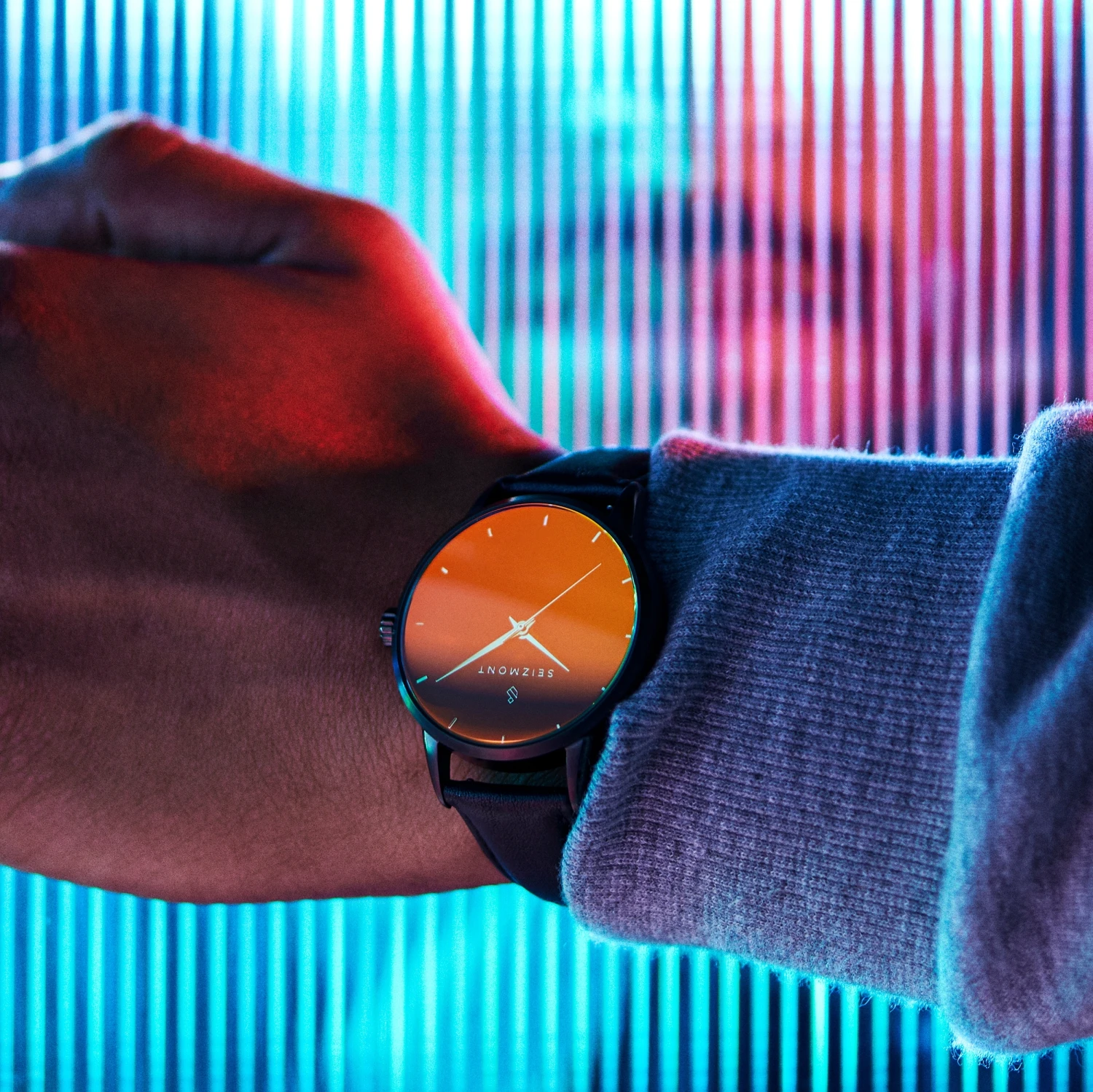 Un boîtier gris bronze en acier chirurgical brossé protège son mouvement japonais Miyota d’une grande fiabilité. Le cadran noir est serti de graduations et d’aiguilles dorées et est décoré du logo Seizmont.