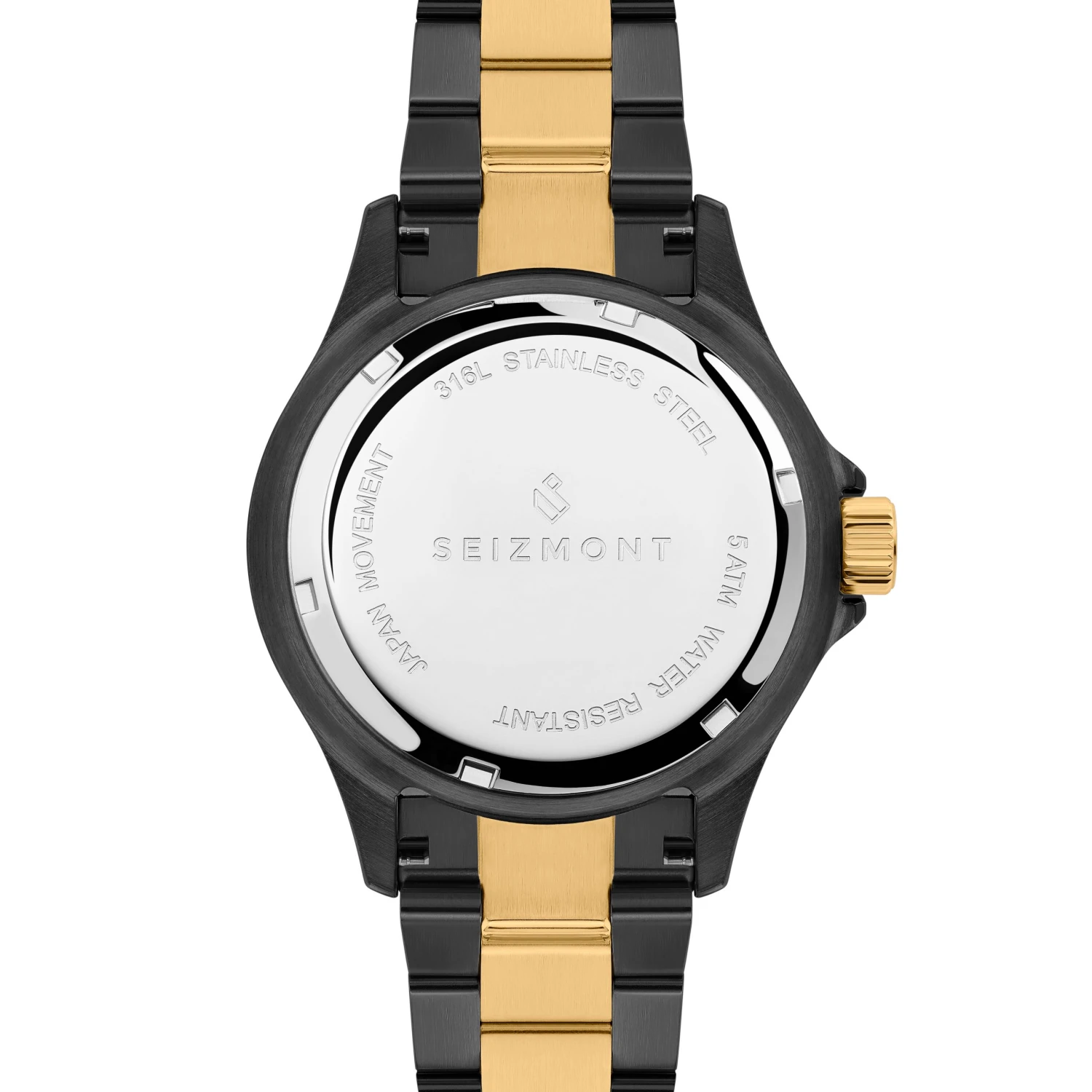Son bracelet en acier inoxydable 316L couleur noir et or est Ă©quipĂ© d’une robuste boucle dĂ©ployante rĂ©glable qui maintiendra son boĂ®tier de 42mm en toute sĂ©curitĂ© autour de votre poignet.